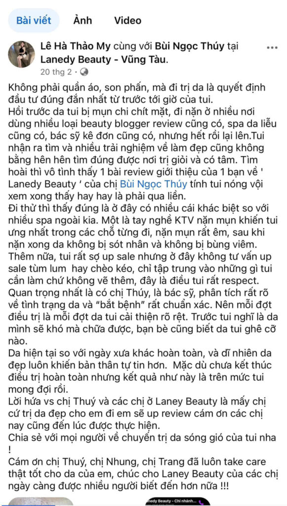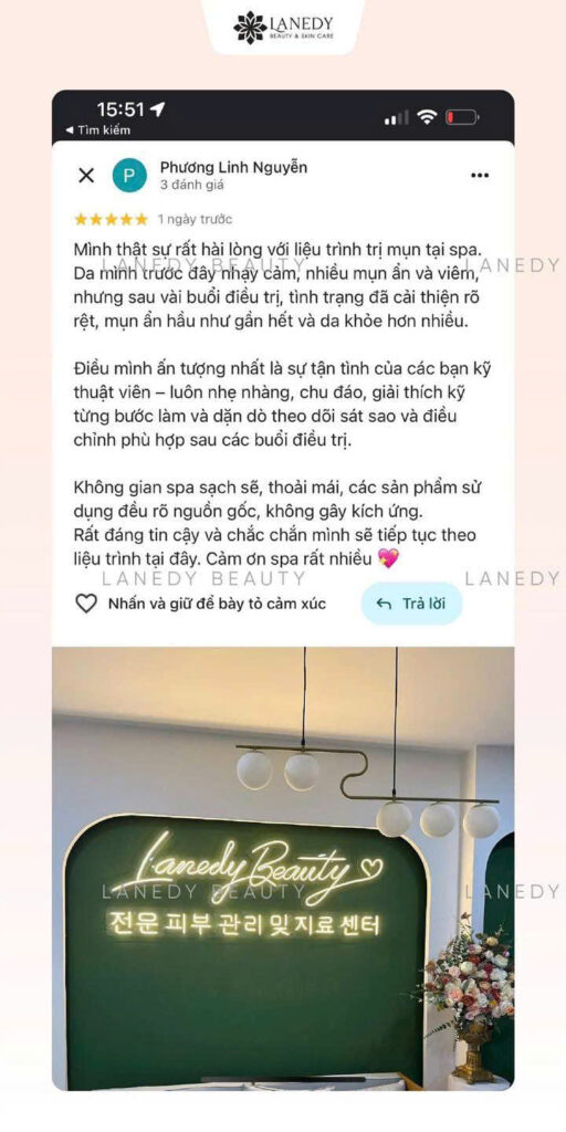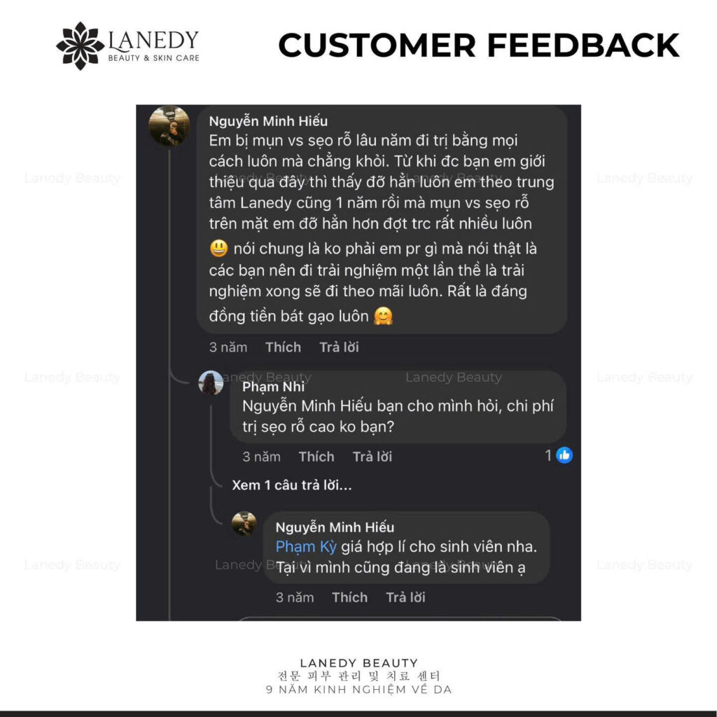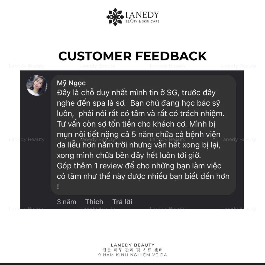 Tại Lanedy Beauty, chúng tôi tin rằng một liệu trình điều trị da hiệu quả không chỉ đến từ công nghệ hay sản phẩm, mà còn từ sự đồng hành tận tâm. Đội ngũ kỹ thuật viên, bác sỹ và chuyên viên của Lanedy luôn lắng nghe, theo sát tiến trình cải thiện làn da, kịp thời hỗ trợ và giải đáp mọi băn khoăn. Với sự chuyên nghiệp và tử tế trong từng chi tiết nhỏ, Lanedy mong muốn mỗi khách hàng đều cảm nhận được sự an tâm, thoải mái và trân trọng trong suốt hành trình làm đẹp.