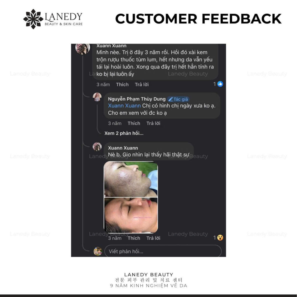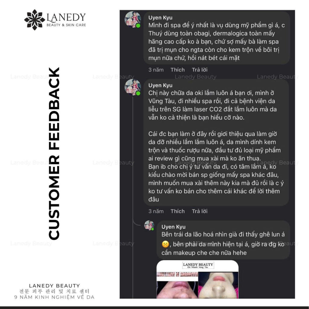 Từ 2016 đến nay, đã có hàng nghìn ca lâm sàng được điều trị thành công về các vấn đề như mụn nội tiết, sẹo rỗ, nám, da nhiễm độc tố, da lão hóa. Với kết quả đã đạt được, LANEDY đã thu hút ngày càng nhiều khách hàng tại TP HCM và Vũng Tàu cùng với sự tin yêu và nhiều phản hồi tích cực